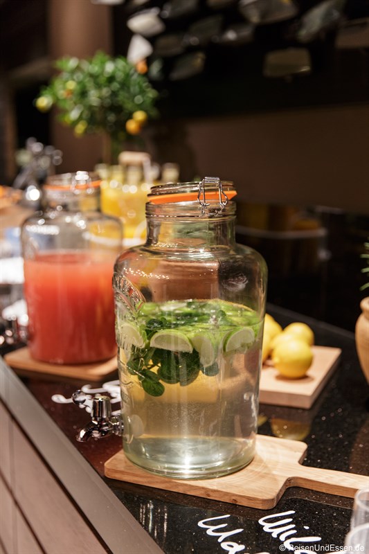 Ganz herrlich fand ich den frisch gepressten Orangensaft mit dem Orangenbäumchen daneben.