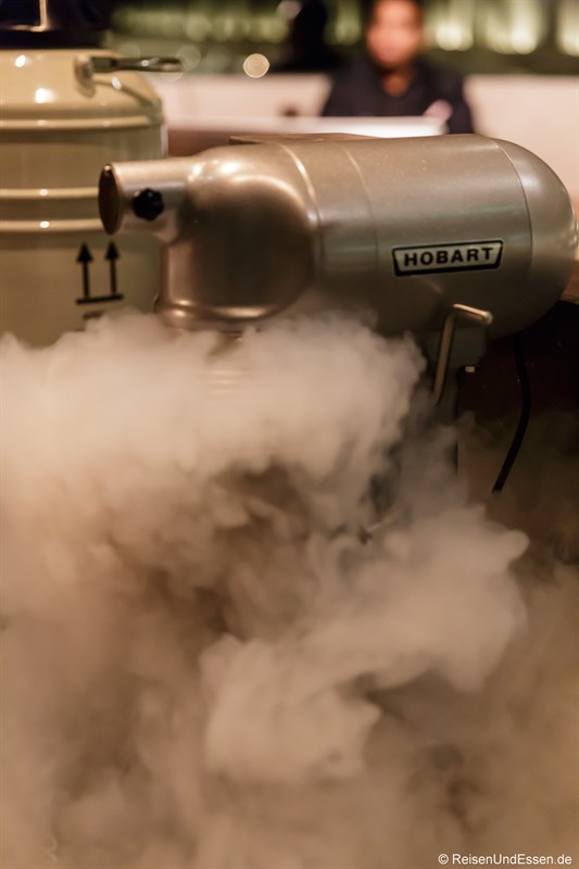 Die Maschine wurde in Gang gesetzt und jetzt passierte das magische. Wow was für ein Effekt. Ich erkannte jetzt, dass es sich um eine Eismaschine handelt. Frisches Eis wurde zubereitet und verschiedene Zutaten standen danach bereit, so dass man seine individuelle Geschmacksrichtung bestimmen konnte.