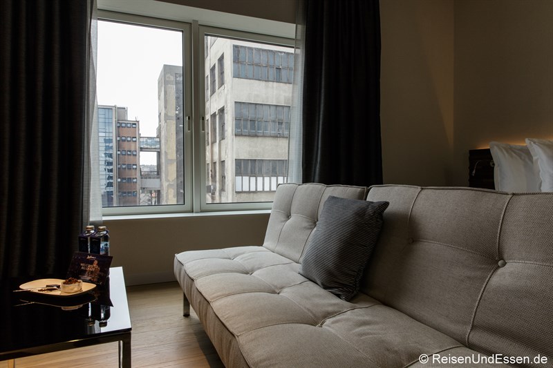 Blick in unser Standard-Zimmer. Wir merkten dem Zimmer an, dass wir die ersten Gäste waren. Alles war total neu und unberührt. Wir hatten sogar einen Blick auf das Belgrader Kult-Gebäude BIGZ (davon aber in einem anderen Artikel mehr).