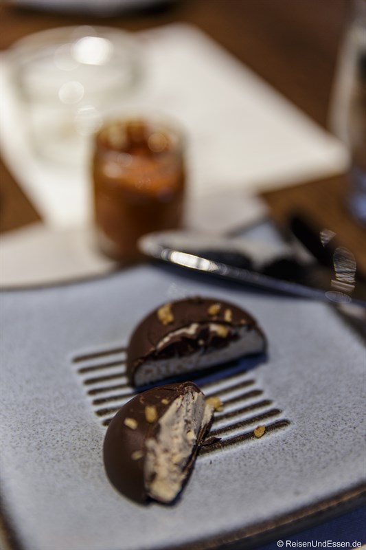 Zum Abschluss noch ein Dessert. Sehr angenehm satt war ich nach diesem Diner.