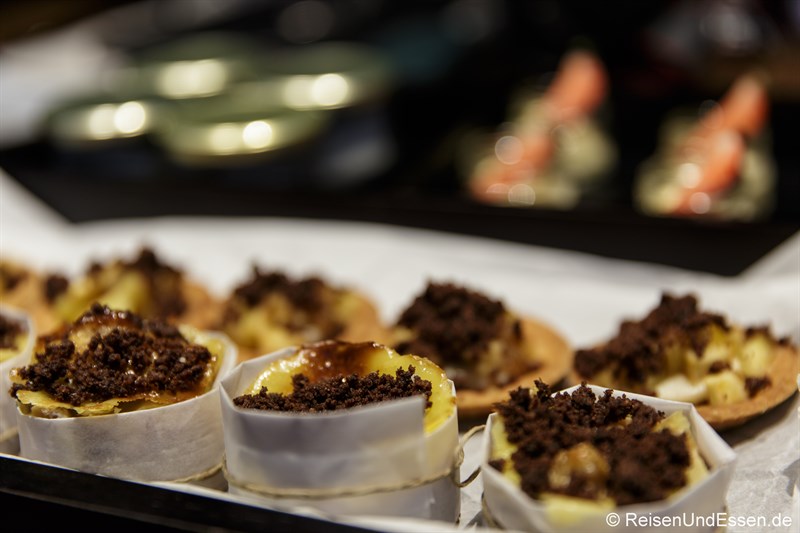 Das Essen an dem Abend kam vom OMB Larder in den Boxen, die normalerweise für den Zimmerservice benutzt werden. Ich finde so macht es auch was her in dieser speziellen Umgebung.