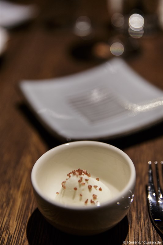 Der Gruss aus der Küche hatte den Namen GARTEN. Sehr interessant und das Konzept der Nachhaltigkeit sehr anschaulich gemacht. Wir hatten in Tirol bereits mit der Kräuterhunterin Erfahrungen in diese Richtung gesammelt und auch schon zu Hause damit experimentiert. Besser kann man sein eigenes Konzept nicht umsetzen.