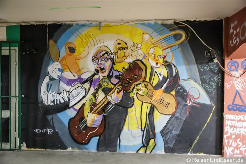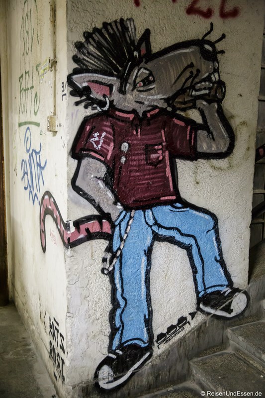 Die Brauerei als Trip ist eine Möglichkeit. Ist gibt noch eine andere Möglichkeit direkt neben dem Hotel. Ein umstrittenes und vieldiskutiertes Gebäude mit dem Namen BIGZ. Aus der jugoslawischen Area und von außen ein graues Fabrikgebäude. Im Innern empfing es mich mit bunter Graffiti.