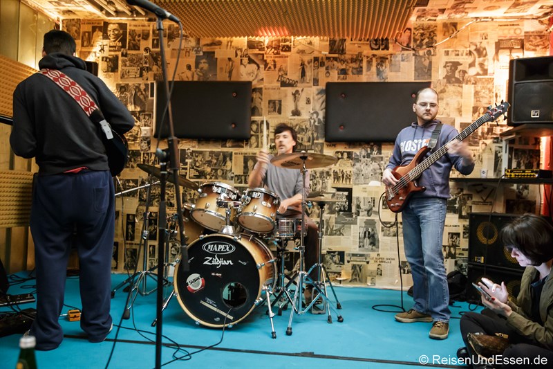 Studio, Mischpult, Band und dazu noch Bier. Was für eine Mischung. Aber das passte einfach zu dem Gebäude und dem Abend.