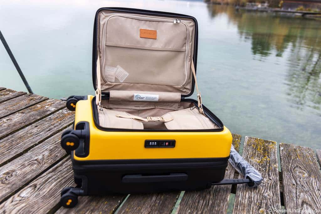 Beide Anforderungen erfüllt der Level8 Voyageur. Der Koffer besitzt ein TSA-Schloss und die Farbe Gelb ist außergewöhnlich und gut sichtbar. Es gibt den Koffer auch in dezenteren Farben wie blau, schwarz und dunklem oliv.