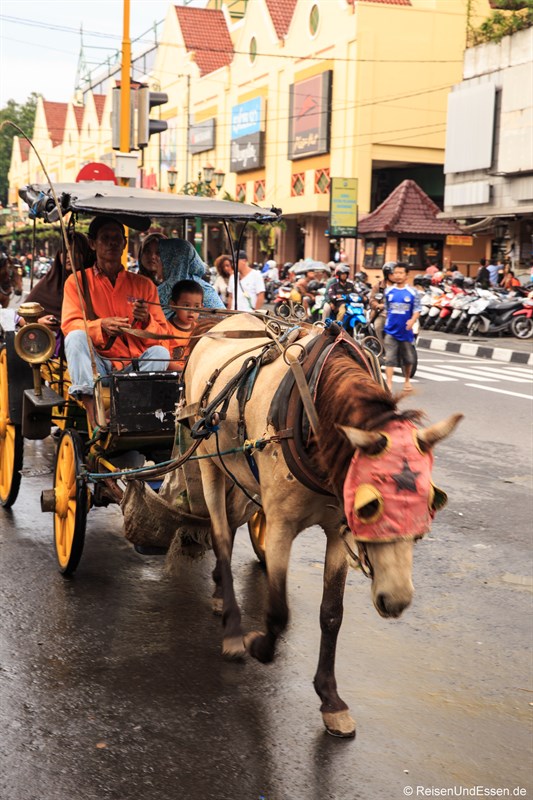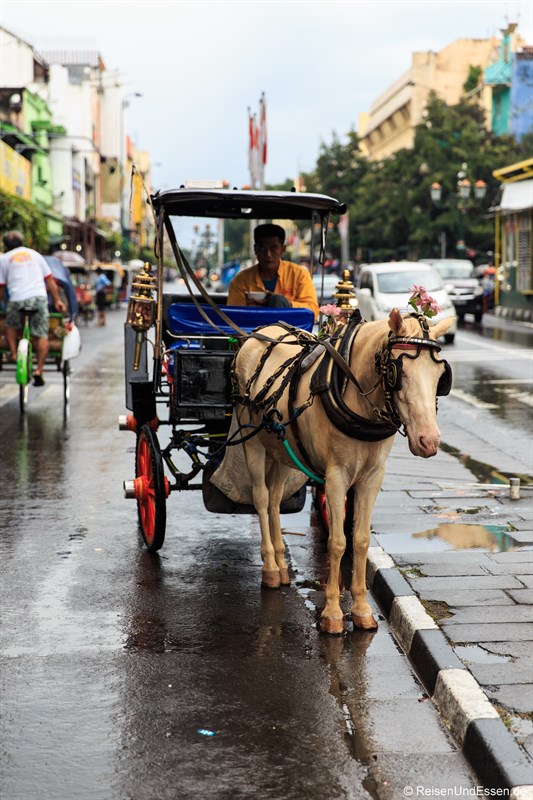 Zwischen den Autos bahnen sich dann noch Pferdekutschen ihren Weg entlang der Malioboro.