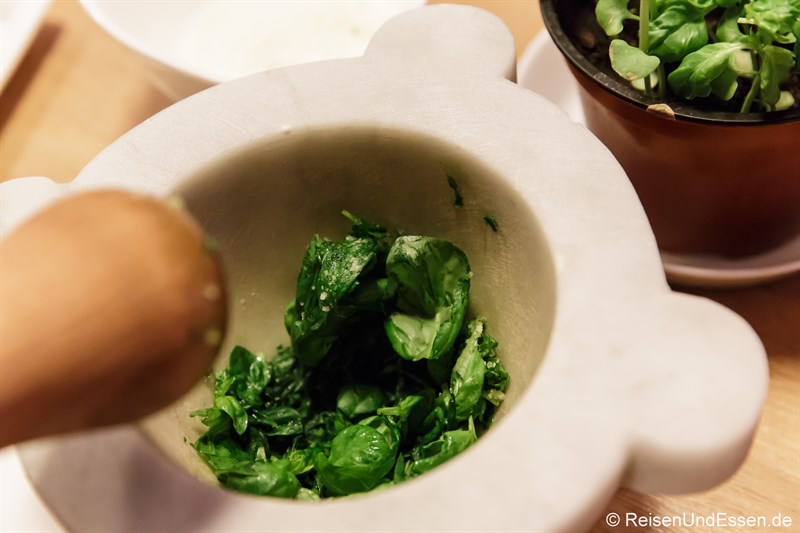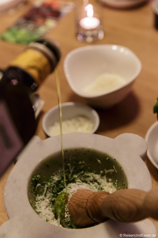Alles stand für uns bereit und wir warteten auf die Anweisungen von Pesto-Weltmeister Sergio Muto, der auch selbst ein Pesto zubereitete.