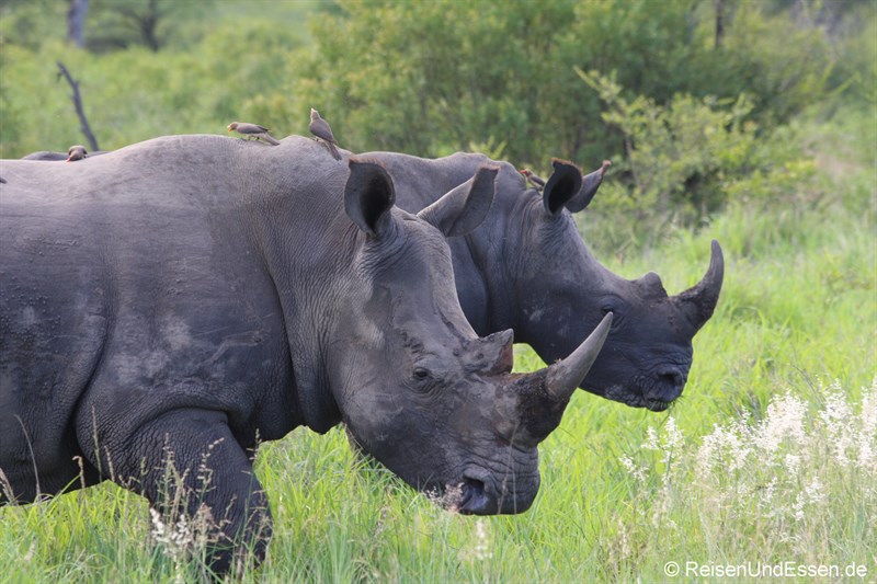 Auf der Fahrt zurück sahen wir dann zwei Nashörner, die im Gras lagen und es sich gemütlich gemacht hatten.