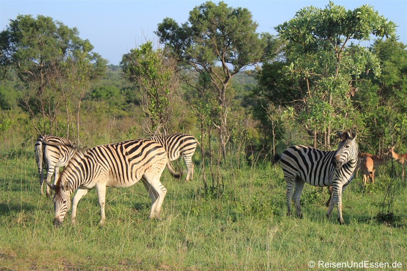 Bei der Pirschfahrt konnten wir auch immer wieder die Landschaft im Krüger Nationalpark an uns vorbeiziehen lassen. Der Park besteht hauptsächlich aus vielen Büschen und Bäumen (und nicht aus einer Savanne). Das stört natürlich hin und wieder den Blick auf die Tiere.