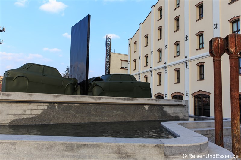 Mein Blick fiel auf die verschiedenen Rückspiegel. Diese stammen von dem Kultauto Zastava 101 und verschönern eine Wand im OMB Larder.